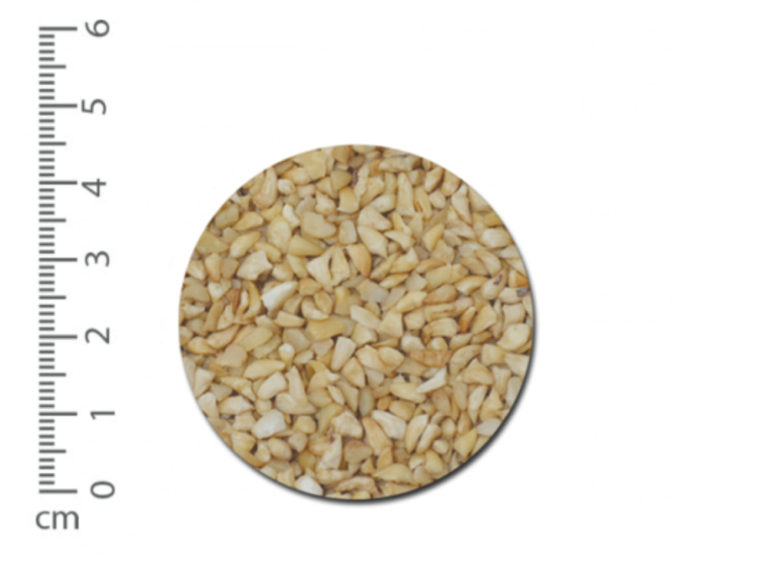 Size description: Grains, granules, or baby bits. Passing through Sieve Numbers =2.8 mm and Retained on Sieve Number = 1.7 mm.